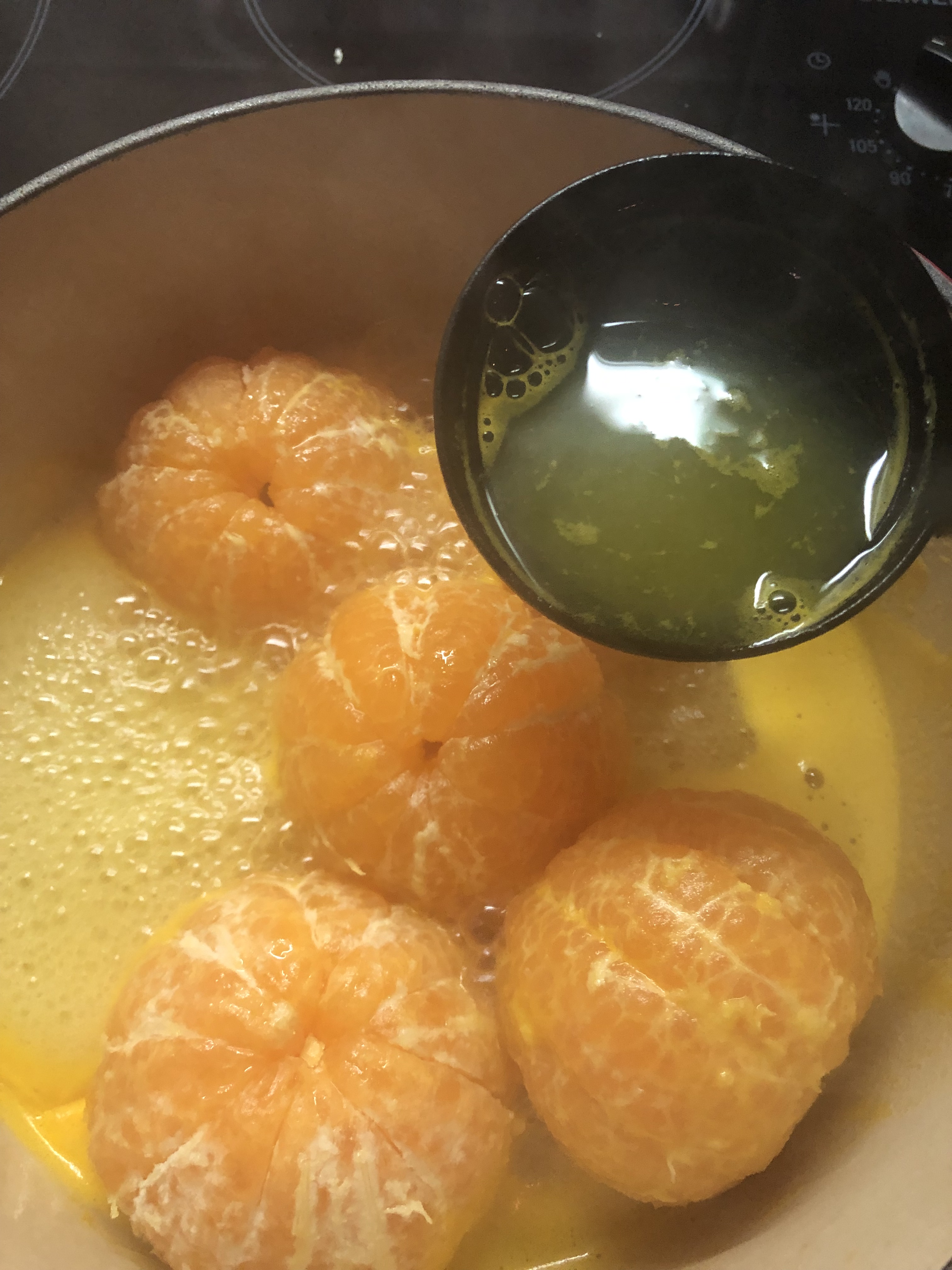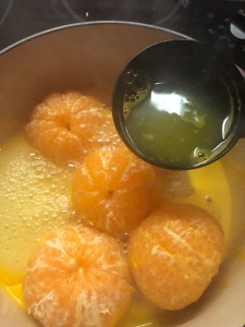 Clémentines cuites arrosées à la crème de pêche